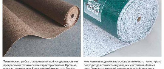 Après le nivellement de la base, le revêtement de sol est réalisé sur la surface en béton substrats sur le film de polyéthylène. Le substrat servira d'amortisseur des influences mécaniques externes. De plus, les fonctions du substrat sont la protection contre le bruit et l'humidité. Le choix optimal est les matériaux polymères vendus en rouleaux.