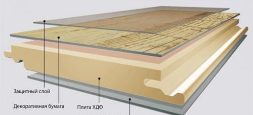 - Mélamine de protection.C'est sur cette couche qu'une personne marche en marchant. Il est transparent afin que vous puissiez voir le motif dans la profondeur du produit. De plus, la couche protège simultanément l'image d'une usure prématurée, endommager, des influences mécaniques et chimiques extérieures. La couche de mélamine ne permet pas aux rayons ultraviolets solaires de pénétrer profondément et de gâcher le motif.