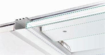 - Le profil PLS est fixé par un élément séparé (à l'aide de suspensions), ne borde pas armature en métal et crée un plan unique au plafond.