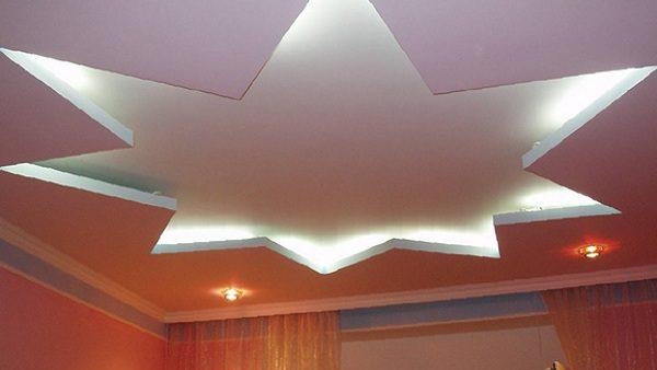 Le troisième plus peut être considéré comme l'uniformité de la texture des murs et du plafond. Si les murs sont finis avec des plaques de plâtre, il est logique d'en recouvrir le plafond. Vous avez juste besoin d'acheter un peu plus de matériel. De plus, le plafond peut être rendu à la fois simple et unique. Il n'y a rien qui retienne le vol de fantaisie dans cette méthode, à l'exception du contenu de votre portefeuille.