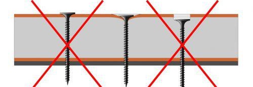 La caisse résultante est gainée de cloisons sèches. Pour la fixation, des vis autotaraudeuses noires avec un pas de filetage fin de 4 à 5 cm de long sont utilisées.La distance entre les vis autotaraudeuses est prise égale à 20 cm, la distance au bord de la feuille est de 2 cm. protéger la feuille de la destruction. Les capuchons des vis autotaraudeuses sont légèrement encastrés dans la surface, puis masqués avec du plâtre.
