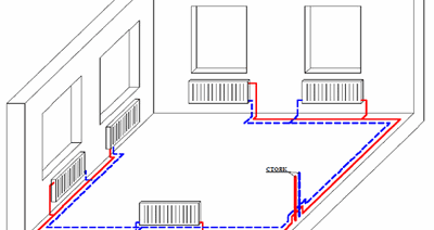 Si vous regardez la structure du câblage du système de chauffage, vous pouvez conclure qu'il s'agit d'une sorte de version à deux tuyaux. La seule différence est l'utilisation de composants et de composants supplémentaires lors de l'installation, ce qui rend l'ensemble du système plus pratique et économique.