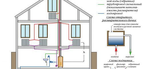 Dans toutes les variantes présentées de systèmes de chauffage avec câblage, la circulation naturelle peut être utilisée. Un vase d'expansion doit y être prévu, où se trouvera le liquide de refroidissement lorsque la température augmentera.Ceci, à son tour, aide à contrôler le niveau de sa pression, éliminant ainsi les dommages à tous les équipements.