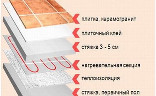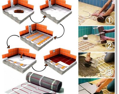 Dans les deux cas, tous les câbles conducteurs, capteurs et lignes de raccordement doivent être installés avant le coulage de la chape. Le chauffage au sol électrique sous carrelage peut être installé non seulement dans des locaux résidentiels, mais également dans d'autres locaux, car tous les câbles et éléments de film ont une bonne isolation et les joints sont en outre isolés avec des enduits spéciaux.