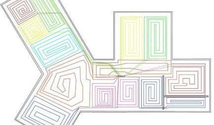 En utilisant un schéma en spirale pour la pose de tuyaux sur le sol, il est possible d'isoler des sections individuelles (près des murs extérieurs ou des fenêtres). Toute la chaleur commencera à être transférée à une personne lorsqu'elle ne sera qu'au sol dans la pièce à l'entrée.