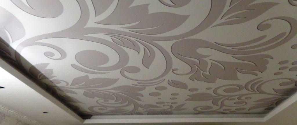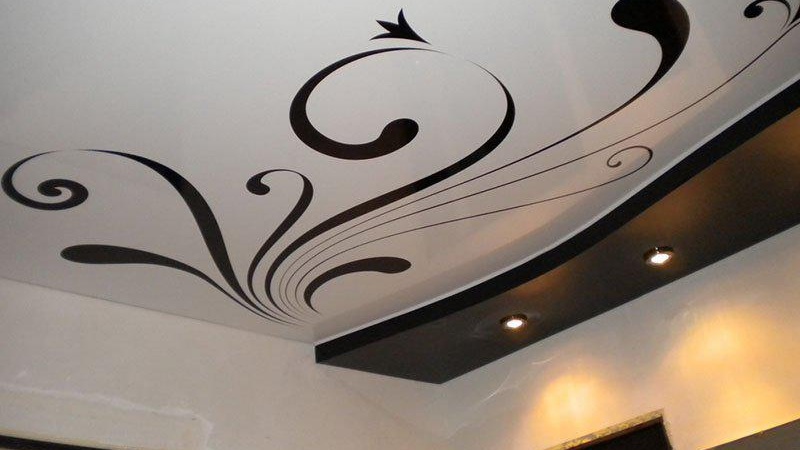 Option d'étirement Il est fabriqué à partir d'une variété de nuances de couleurs, ainsi qu'avec l'impression de divers motifs. Dans ce cas, la surface de la plaque de plâtre est collée avec du ruban adhésif, du papier peint ou peinte.