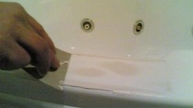 - Dans de tels cas, la réparation de la baignoire en plastique est terminée, mais si la rayure est plus profonde, l'acrylique liquide ne suffira pas.