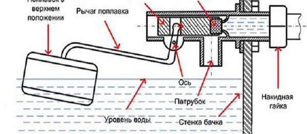 - Avec le niveau d'eau, le flotteur monte, ce qui, atteignant une certaine hauteur par rapport au fond, bloque le blocage de l'alimentation en eau.