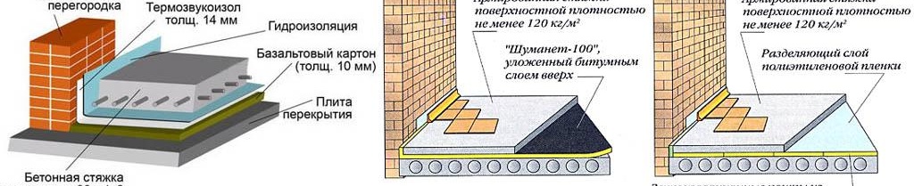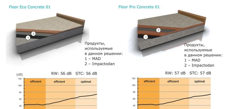 Le bruit d'impact peut également être éliminé. Pour cela, des sols «flottants» sont généralement disposés, dont la principale caractéristique est l'absence de connexion avec tout type de revêtement de sol.Par conséquent, les vibrations du son ne pénètrent pas à l'intérieur de l'appartement. C'est ainsi que c'est fait insonorisation du sol dans un appartement sous chape.