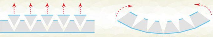 Vous pouvez le faire de deux manières. Dans la première méthode, des coupes sont effectuées sur la bande GKL. Dans ce cas, la face extérieure de la bande reste intacte. Plus le rayon de courbure est raide, plus ces coupes sont proches les unes des autres.