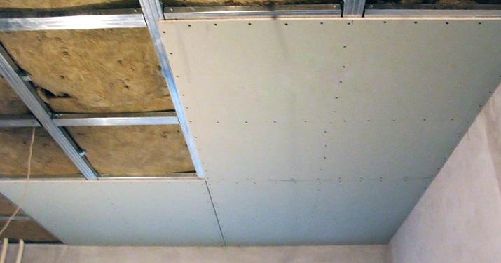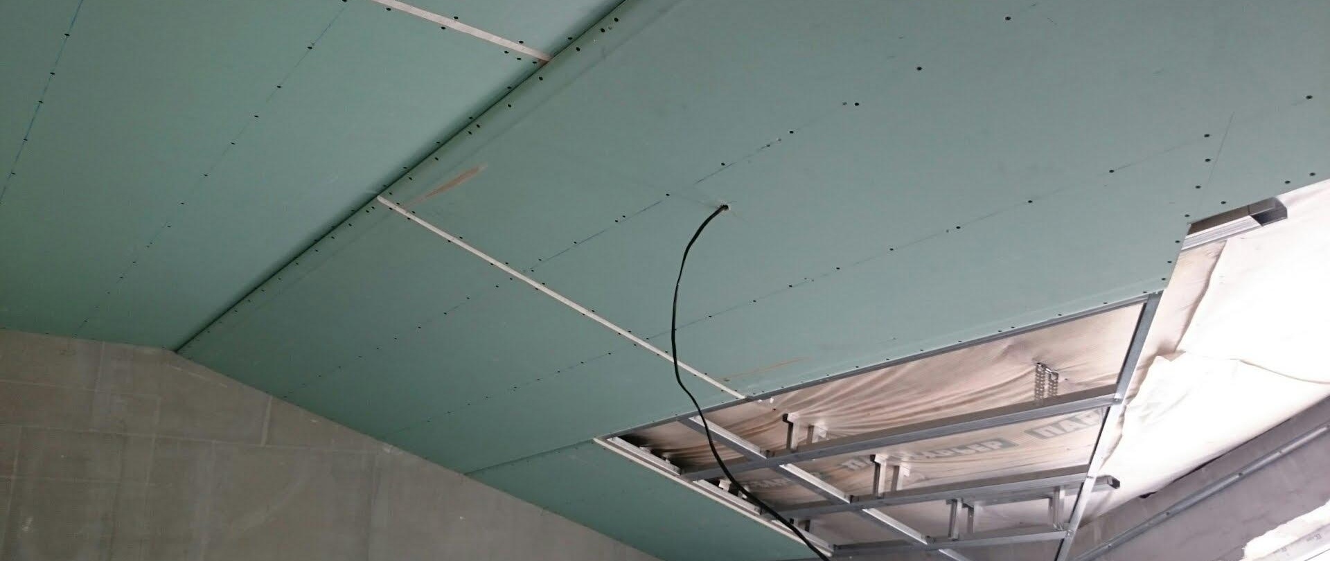 Une feuille de cloison sèche pour un faux plafond est utilisée avec une épaisseur de 9,5 mm, mais il est préférable d'utiliser 12,5 mm. Idéalement, la technologie repose sur deux couches de feuilles. La structure du plafond doit être solidement fixée.