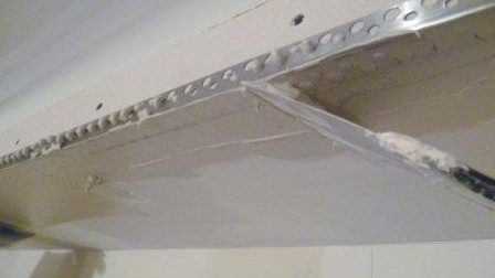 Très probablement, de petits écarts subsisteront.Par conséquent, il est nécessaire d'attendre que la couche de plâtre sèche, après quoi le coin doit être traité avec un apprêt. Quand il sèche aussi, vous pouvez enfin niveler avec du mastic (couche fine) à l'aide d'une spatule coudée.