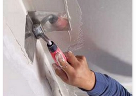 - Une solution de plâtre est appliquée sur le mur adjacent avec une petite spatule plate. L'enduit est appliqué par petites touches sur toute la hauteur de l'angle à niveler.