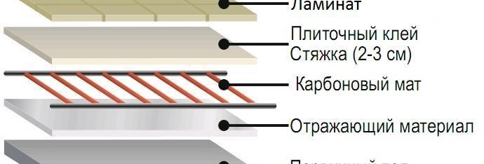 Il convient de souligner immédiatement les inconvénients et les avantages du chauffage par le sol infrarouge, qui est disposé sous le stratifié. Le principal est la faisabilité économique.La consommation d'énergie est réduite à une limite minimale. Même si une section spécifique du sol en film est endommagée, elle ne tombera pas complètement en panne.