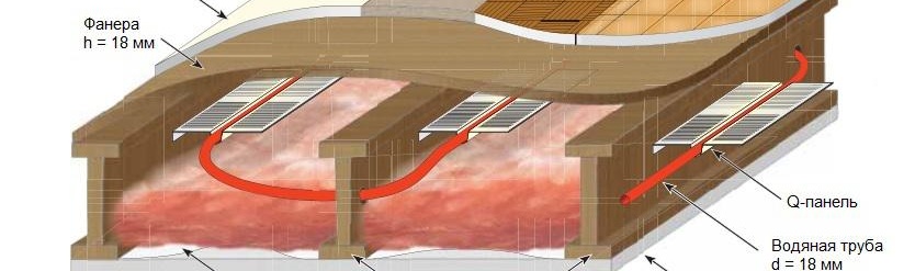 Personne ne recommandera de poser un plancher chauffé à l'eau sous des bûches de bois, une couche supplémentaire d'isolation hydraulique et thermique. En cas de pose ultérieure du stratifié sur la surface, le transfert de chaleur sera réduit à zéro. La meilleure option - Chape en bétonqui s'applique partout. La chape ne permettra pas d'endommager mécaniquement les tuyaux de chauffage et contribuera également à une répartition uniforme de la chaleur sur toute la surface.
