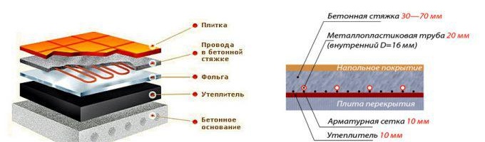 Considérant l'installation d'un plancher électrique sous une dalle basée sur un câble chauffant, un exemple classique de la construction d'un tel système de chauffage est pris en utilisant toutes les couches et la technologie de leur construction.