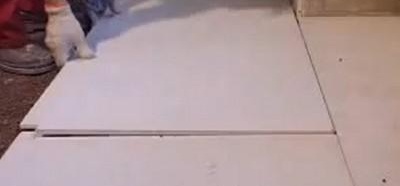 Important à retenir ! Afin de poser une dalle sur une dalle OSB de haute qualité, il est nécessaire de garantir sa possibilité de dilatation thermique. Par conséquent, une certaine distance (3-4 mm) doit être retirée entre les feuilles pour donner aux plaques la possibilité de modifier librement leurs dimensions géométriques sous l'influence des températures. Cet espace doit être rempli d'un composé absorbant les chocs, un mastic est bien adapté pour cela. De la même manière, la distance doit être retirée de tous les murs autour du périmètre.
