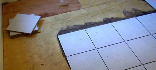 La pose de carreaux sur une base préparée n'est pas différente du processus sur un sol en béton, cela commence donc par des marquages. Les carreaux sur un plancher en bois peuvent être posés à plat et en diagonale, mais vous devez d'abord marquer la position initiale de la première ligne. Après avoir appliqué des marquages graphiques et un dessin indicatif en cas d'utilisation de carreaux multicolores, il convient d'essayer l'ensemble du carreau (posé sur toute la surface conformément au dessin) afin de prédécouper les pièces nécessaires et faire des trous dans les points de sortie des tuyaux du sol.