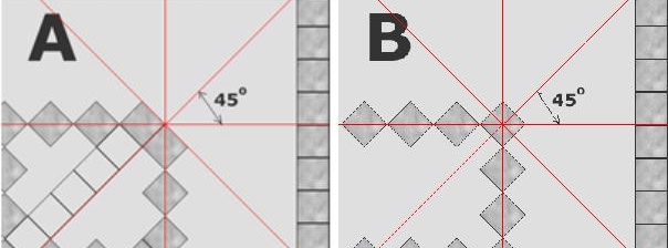 Nous avons brièvement mentionné l'essentiel, et maintenant nous allons examiner directement comment les carreaux sont posés en diagonale sur le sol. En particulier, nous l'analyserons sous la forme d'une consigne visuelle applicable dès maintenant. On remarque tout de suite que l'instruction convient à la fois étendu sur le sol, et pour des murs.