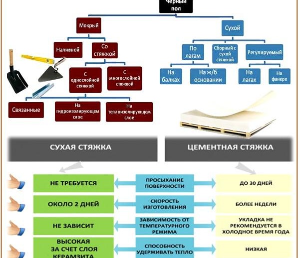 - si la chape est disposée dans des pièces basses, elle vole structurellement jusqu'à 100 mm de la hauteur de la pièce.