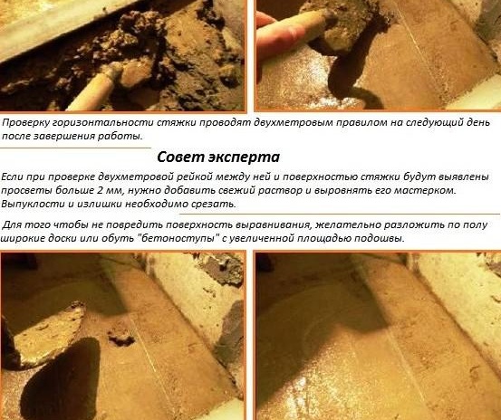 Si nécessaire, une fois la surface sèche, retirez les guides (balises). Les vides résultants sont scellés avec du mortier. Cela vous permettra d'obtenir une chape monolithique.