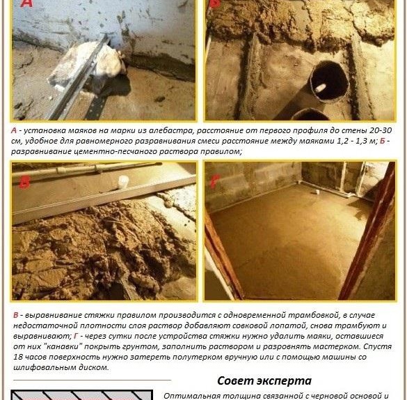 L'essentiel est que la hauteur du phare ne dépasse pas le niveau du futur sol. Le pas de fixation des éléments peut varier de 40 à 80 cm Certaines personnes tendent un filet de fils le long des phares pour vérifier leur horizontalité. Cela crée certaines commodités lors du nivellement de la solution sur la surface de la pièce.