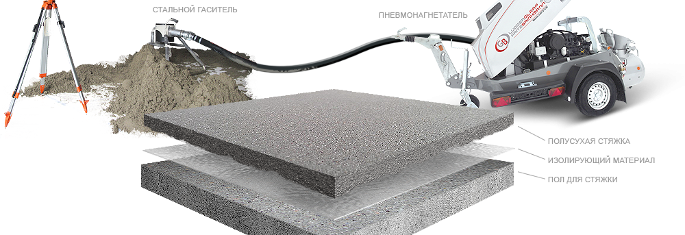 Il convient de prêter attention à la nouvelle technique populaire chape semi-sècheque cette technologie du dispositif de chape dans une maison à panneaux est très rapide et consiste dans le fait qu'elle nécessite l'utilisation d'un équipement spécial. Son coût est élevé, c'est pourquoi il est préférable d'utiliser un contrat. Ce n'est qu'avec la technologie que le résultat maximal en termes de qualité de surface et de durabilité sera atteint. Temps de séchage de la chape semi-sèche, comparé à chape ciment-sable, est réduite d'environ 2-3 fois.