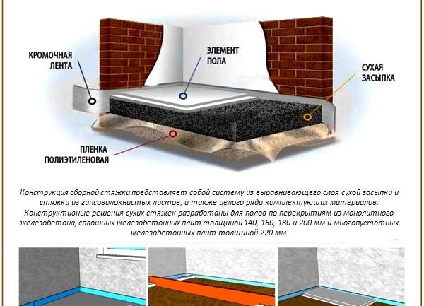 Le plus souvent utilisé dans les maisons à panneaux composés autonivelants. Avec leur aide, une forte chape. Les différences de hauteur que cette conception vous permet de masquer sont de 20 à 40 mm.Le montage de la chape est très simple et pratique. Il ne nécessite pas de connaissances particulières et d'exigences sérieuses en termes d'expérience. Il est très important dans ce cas de disposer une couche d'étanchéité, après quoi la chape est déjà coulée.
