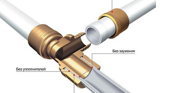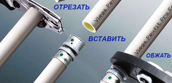 Lors de l'utilisation de raccords enfichables, il est possible d'obtenir une connexion permanente de tous les éléments du tuyau XLPE. Les travaux nécessiteront l'utilisation d'équipements de pressage spéciaux. Tout se fait comme suit :