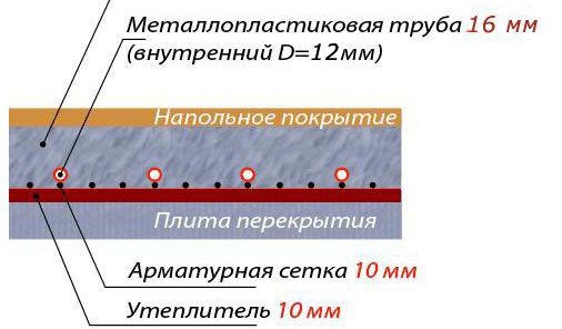 - Dispositif d'attache de renfort. Dans le même temps, l'attention est attirée sur le matériau du tuyau de chauffage de l'appartement sous la chape, car des charges importantes, par exemple sur des matériaux en polyéthylène, entraîneront des déformations et des dommages.Mais cette étape devrait être discutée plus en détail.