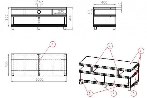 L'avantage d'utiliser des panneaux de particules stratifiés est que vous pouvez gagner du temps lors de la fabrication d'une table de chevet pour un aquarium de vos propres mains ou pour la télévision, car il n'est pas nécessaire de traiter et de meuler la surface.Ainsi, les dessins à faire soi-même d'un meuble TV et de ses pièces individuelles sont prêts. Vous pouvez maintenant procéder à la fabrication directe d'ébauches. Lors de l'application des dimensions au matériau, il est nécessaire de respecter les dimensions exactes.