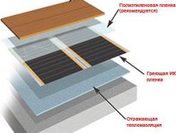 Quant au chauffage au sol infrarouge, il est posé au-dessus de la couche isolante. La fixation dans ce cas est réalisée avec un ruban adhésif spécial.