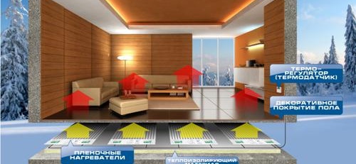 Cette conception a un thermostat. Avec lui, vous pouvez modifier indépendamment la température dans la pièce et dans ses zones individuelles. Le sol chauffant infrarouge est absolument inoffensif pour la santé humaine.Il n'émet que des ions chargés négativement, ce qui a même un effet positif.