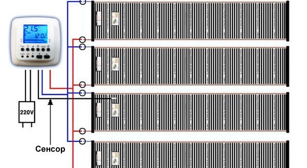 Il installe également thermostat et un capteur de température, qui créent ensemble des conditions favorables pour maintenir le niveau de température requis. Vous pouvez définir indépendamment sa limite, ainsi que choisir l'heure d'activation et de désactivation du fonctionnement des éléments chauffants.