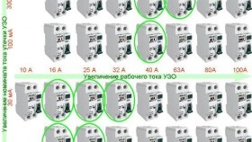 - Selon le courant de fonctionnement nominal. La valeur des courants nominaux (de travail) pour les différentiels est la même que pour les disjoncteurs, elle est de 16, 25, 32, 40, 63, 80 A.