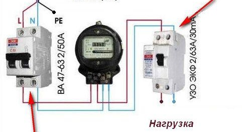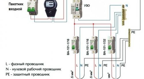 - Impossible de connecter le travailleur nul (N) et un conducteur de phase qui a traversé le RCD, avec d'autres conducteurs neutres et de phase après le RCD.