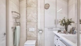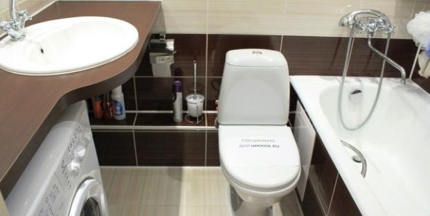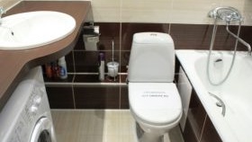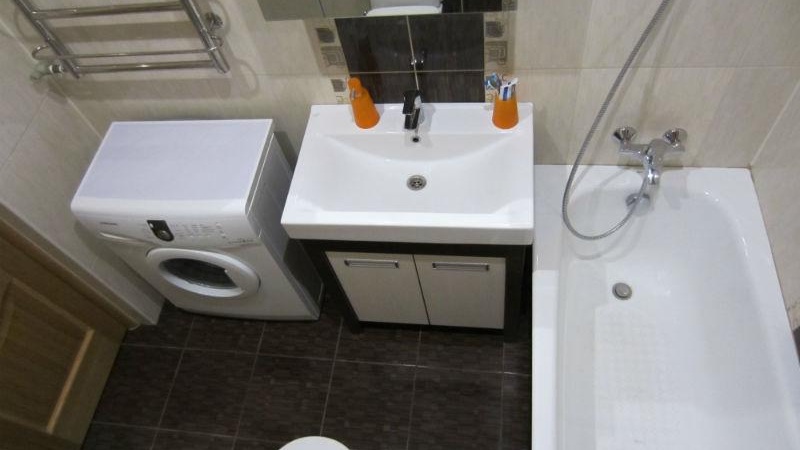 La machine à laver peut être installée sous l'évier, et au-dessus des toilettes pour faire une étagère qui cache la cuve. Vous pouvez également utiliser l'espace au-dessus de la porte : il peut être anobli avec des étagères. N'oubliez pas - tous les moyens sont bons pour l'utilisation la plus efficace de l'espace dans une petite salle de bain.