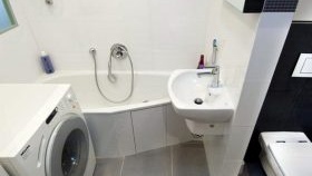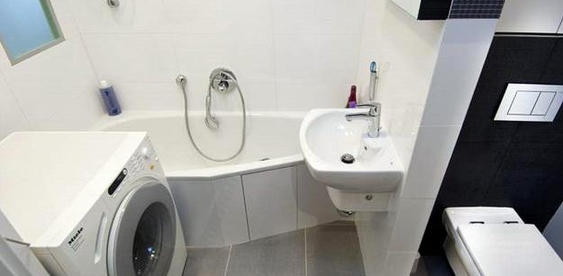 - Certaines options d'aménagement des salles de bains prévoient l'installation d'une baignoire, dans ce cas, choisissez des modèles d'angle ou non standard. Cela libérera non seulement une partie de la pièce, mais ajoutera également de l'originalité;
