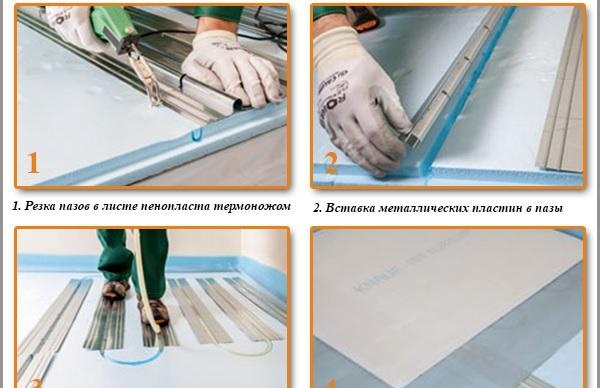 Au début du travail, vous devriez étudier La technologiecomment faire un plancher chauffant à l'eau sans chape sur une base en polystyrène. Ici tout se fait séquentiellement et pas à pas :