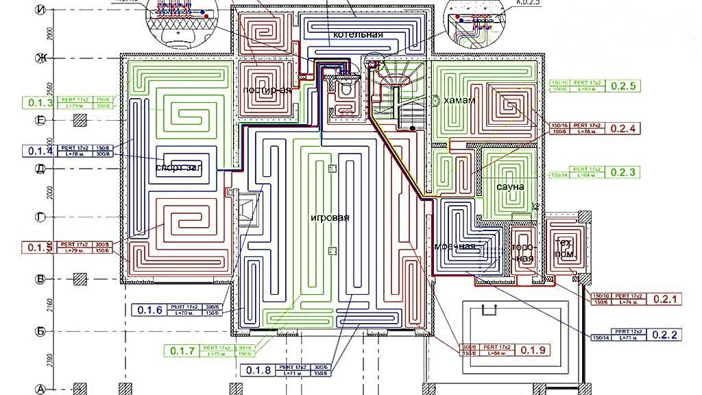 Avant d'installer un sol chauffé à l'eau sans chape, vous devez penser à la disposition pipeline systèmes. Pour ce faire, un plan est d'abord dessiné sur une feuille de papier, qui est ensuite transféré sur une base réelle. Parmi tous les schémas, un «serpent» ou «escargot» est distingué. De plus, il peut y avoir une méthode combinée, lorsque les deux schémas sont combinés dans une pièce pour un meilleur chauffage et une meilleure efficacité d'un sol chaud de type eau.
