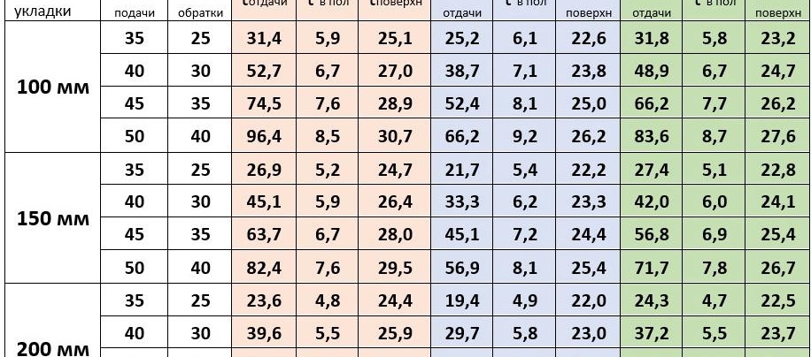 Pour référence: selon la technologie, les tuyaux sont posés les uns des autres à une distance de 10-35 cm, du mur, le tuyau de plancher d'eau doit être à une certaine distance et la température de retour des planchers chauffés à l'eau en dépend.