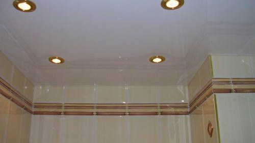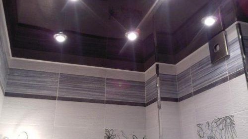 Dans la salle de bain, il est important d'utiliser des types d'éclairage de plafond tendu étanches. L'air de cette pièce est très humide, les caractéristiques techniques des luminaires seront donc plus importantes que leur côté esthétique.