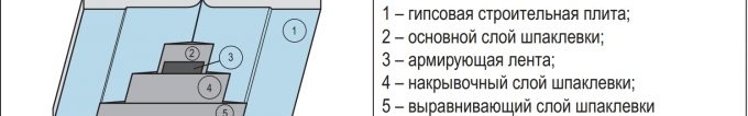 Pour renforcer le joint de cloison sèche, du ruban de renforcement doit être utilisé.Le mastic est appliqué en 2 couches. Après avoir appliqué la première couture, le ruban doit être fixé sans attendre le séchage. Après cela, une deuxième couche de mastic doit être appliquée.