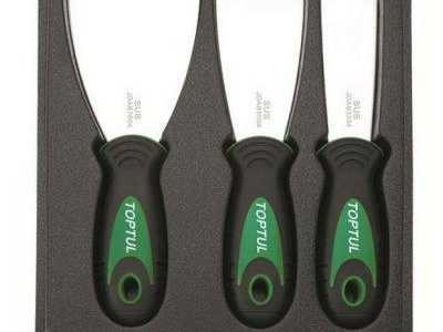 - Un ensemble de spatules. Une spatule avec une spatule étroite (8cm), composition (jusqu'à 15cm), une grande spatule spatule (jusqu'à 40cm). Il convient de prêter attention à la flexibilité du métal. Plus la lame se plie, plus il est facile de travailler.