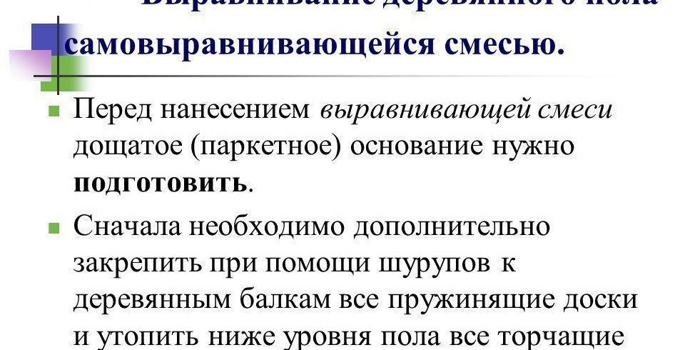Lorsqu'un composé de nivellement est utilisé, le sol autonivelant est très mince et durable. Dans le même temps, un certain additif peut être inclus dans sa composition, ajoutant certaines propriétés et caractéristiques à la solution finie. Les additifs et modifieront la composition du sol autonivelant. Les fissures ne se formeront presque jamais sur une base sèche. La seule exception est le non-respect de la technologie du sol autonivelant.
