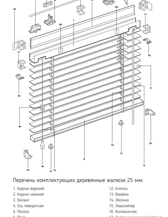 Il existe de nombreux stores sur le marché moderne, fabriqués dans différentes couleurs, tandis que des lattes de différentes formes sont utilisées. Stores, horizontaux sur fenêtres en boisqui sont en bois d'osier. Pour que le matériau serve longtemps et ne change pas de couleurs et de structures, il est traité avec des composés et des vernis spéciaux.